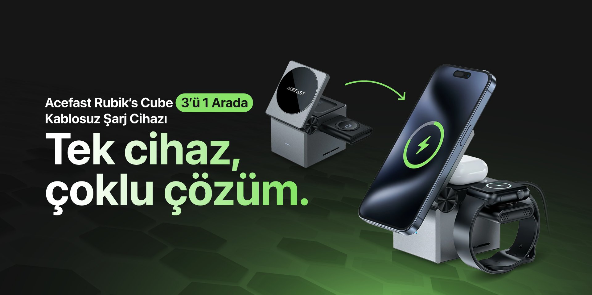 Acefast Rubiks Cube 3in1 Kablosuz Şarj Cihazı-E18